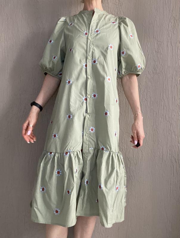 Щоб ви орієнтувалися, мої параметри: обхват грудей 84 см, талії 62 см, стегон 94 см, зріст 167 см. Сукня нова, купила, але не вдягала. Квіти вишиті, дуже гарні