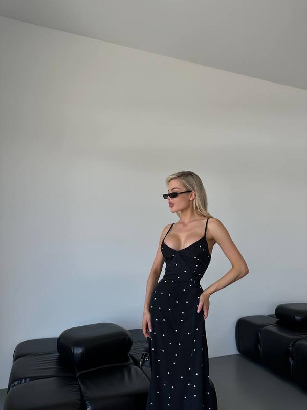 Мод 369in Розмір: 42-44, 46-48 Тканина: софт Колір: чорний Ніжна та романтична сукня в горошок ♥️ Сукня на спинці на резиночці , бретелі регулюються , що гарантує ідеальну посадку !