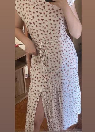 Літня легка сукня, з вирізом на ніжці. Та з фіксацією для талії, вказано на фото. По боках є карманчики
