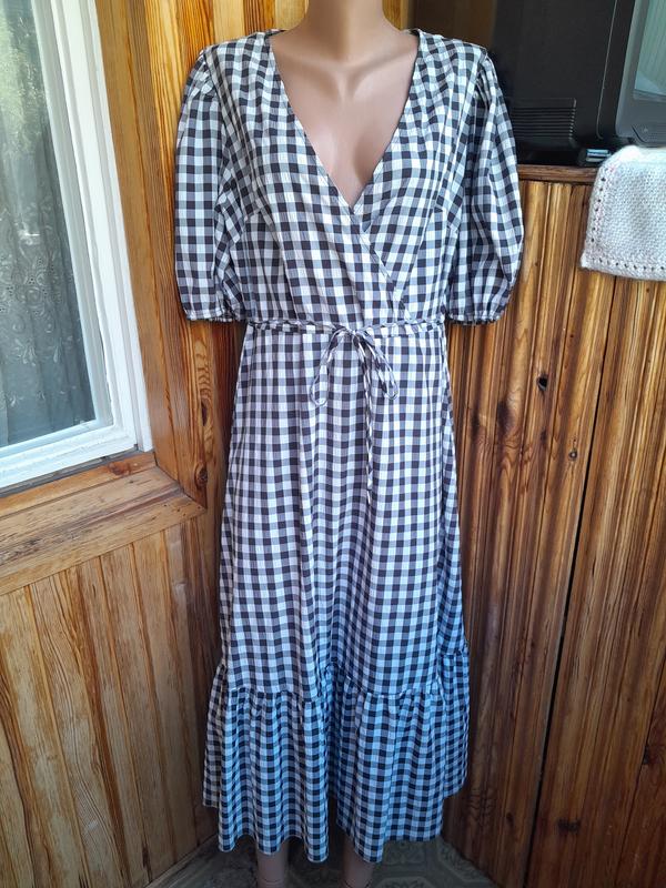 Стильное, длинное платье в клетку 🖤🤍 Размер 16 (2XL) Стан замечательный Замеры: 126, грудь 52-57, талия 43-50(на резинке), бедра 63, плечи 38, рукав 35.