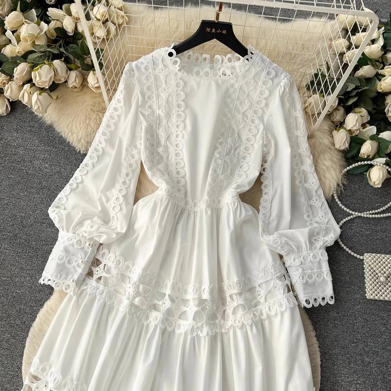 казково красива довга сукня білого кольору приталеного силуету з коміром-стійкою, що додає витонченості образу, ефектними довгими рукавами на високому манжеті з гарними ґудзиками та пишною спідницею, пасує для різних подій: від урочистих заходів до повсякденних виходів сукня виконана з котону і мережива, прекрасно поєднує в собі легкість і романтичність, бавовняна тканина забезпечує комфорт, особливо в теплу погоду, а мереживні вставки додають вишуканості, елегантний білий колір робить її чистою і свіжою пояс входить до комплекту розмір 46 довжина 134-135 см, від шиї до талії 38 см, об'єм грудей 100 см, талія 86 см, довжина рукава від шиї 68 см код 327