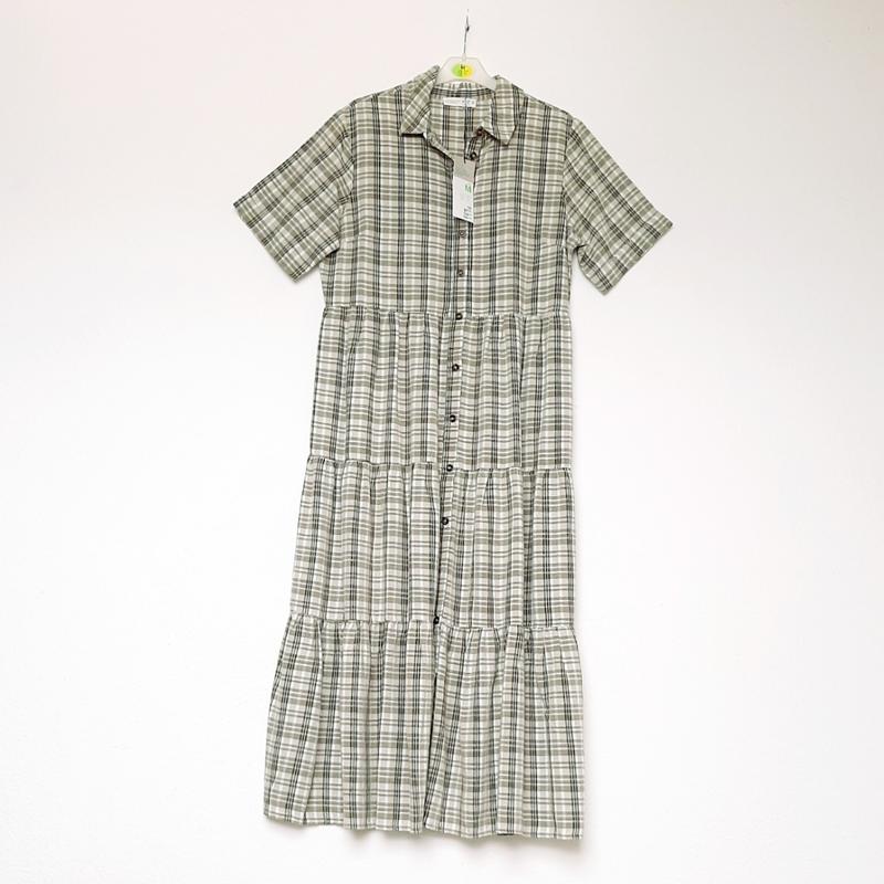 Вибачте але камера не зовсім передає точність кольорів!!! По замірам по плечах +- 42-43см,довжина по спинці по середині без воротніка до шва - 37см,загальна довжина по спинці по середині +- 126см,довжина від підмишки по боковому шву +- 102см,довжина рукава від плеча - 25см,ширина від підмишки до верху півобхват +- 21см,ширина півобхват по грудях від підмишки до підмишки - 53см,ширина півобхват по шву в поясі - 48см,ширина півобхват по другому шву - 66см,ширина півобхват по третьому шву +- 91см!Склад вказано 54%- віскоза,36%-котон,10%-льон!
