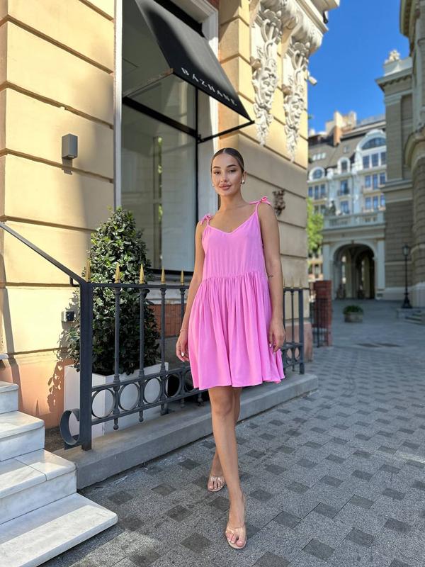 NEW NEW NEW Літні невагомі сукні з натуральної турецької тканини в самих бажаних кольорах цього сезону 🌸 Сукня вільного крою, лямки на завʼязках що допомагає регулювати її 👌🏽 Дуже якісна тканина, не світиться ‼️ ▪️мод : 710 ▪️кольори : Барбі, лео, чорний ▪️тканина: штапель ТУРЕЧЧИНА ( 100% бавовна) ▪️розмір універсальний 42-48 Ціна 850 🔥 Заміри: Охват грудей до 105 см Стегна і талія вільно 🫶🏽 Довжина сукні від краю по спинці 75 см