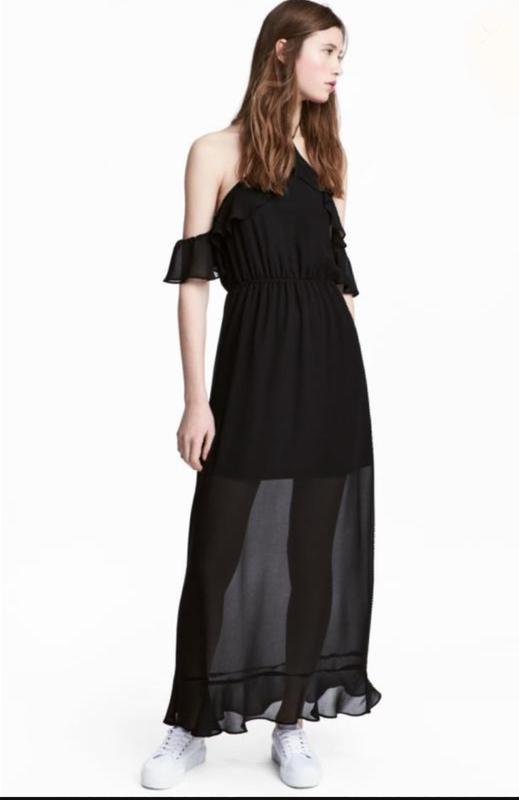 Довгк плаття з оборками і відкритими плечиками від H&M. Розмір на бірці 44. ПОГ вільно ПОТ 39-50 (на резинці, відмінно тягнеться) ПОС 55 см Довжина по переду по центру 142 см, довжина спідниці від талії 105 см. Зав'язується шнурками довкола шиї. Є таке ж біле в квітковий принт. Дивіться, будь ласка, всі мої оголошення - величезний вибір суконь і блуз H&M. https://shafa.ua/member/taniahor Підписуйтесь - часте поповнення асортименту!) Склад: Поліестр