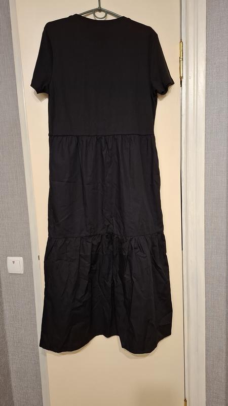 Плаття Колір Чорний Короткий рукав Довге Mango Розмір L,XL Комбіноване.Верх трикотажний.Низ Котон