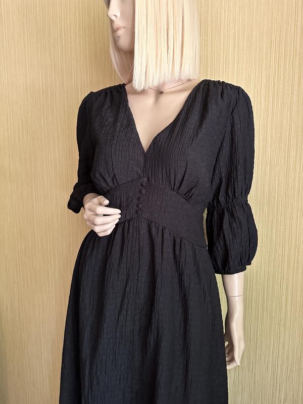 Черное, длинное платье из жатой ткани. Очень мягкое и приятное к телу. Идёт на подкладке из хлопка. Сзади пояс на широкой резинке. Спереди разрез. Состояние идеальное. Бирка с размером срезана. Подойдет на L-XL. Довжина 135 Плечі 41 По грудей 50+ невеликі витачки По талії 44 Рукав 42 По стегон вільно (80+/-)
