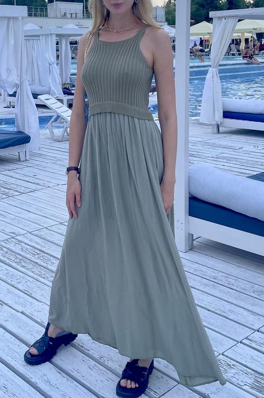 Платье из трикотажного верха и мягкое ткани снизу. Такое платье очень в тренде.
