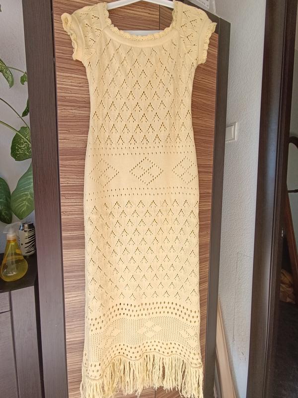 Шикарна сукня плетена з натуральної нитки (котону) не кусюча,милий рукавички,бахрома по подолу. Ідеально підійде під джинсову куртку,сорочку,жилет. По замірам питайте в особисті)