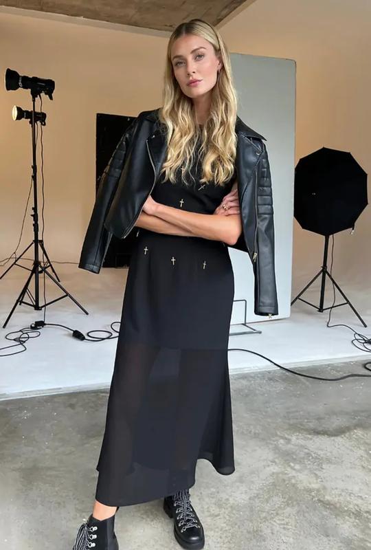 Чудова чорна сукня з відкритою спинкою, нова, розмір 40 плечі 39 рукав 22 пог 50 пот 43 поб 50 довжина від плеча 138