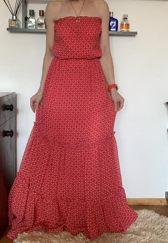 Красивезне ярусне плаття максі з відкритими плечами Стан новий без бірки, низ ярусами, верх відкриті плечі, має підклад На фото одіте на ріст 158, розмір xs На мене довге і велике