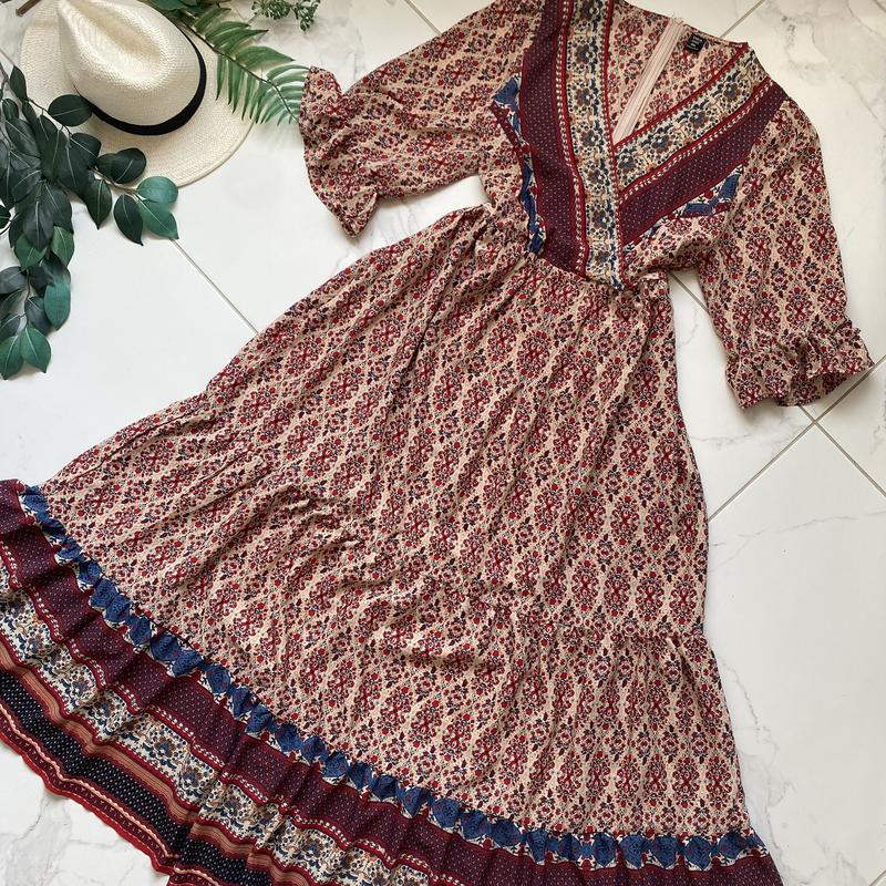 ♥️Сукня червона в орнамент стан ідеальний, поліестер, приємна структурована тканина, легка р хл -довжина 130, рук 42 -нОг 55-57 -нОт 47-49 -нОб вільно 77 ФОТО НА ТІЛІ НЕМАЄ