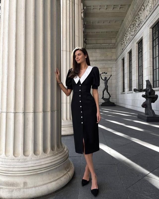 🔝Сукня ⠀ Ціна 790 грн ⠀ Тканина: костюмка, комірець-котон Розміри 42-44, 44-46 Колір: чорний Відправка товару: ПН., СР., СУБ.