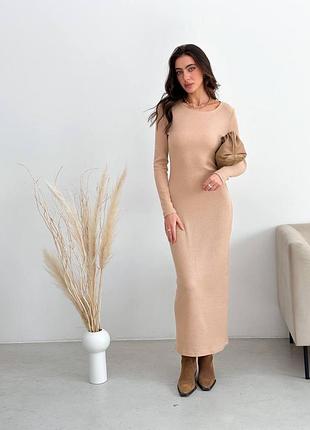 Довга сукня трикотаж рубчик з довгим рукавом