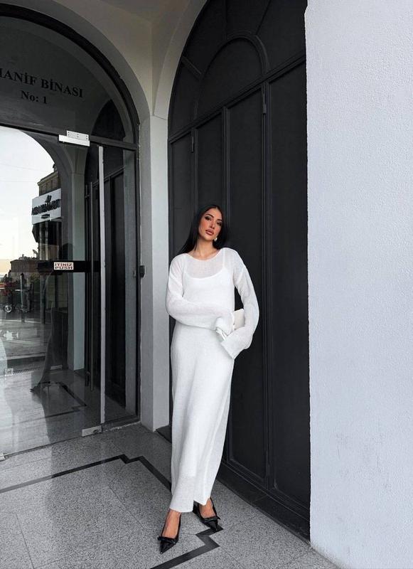 Платье-макси из эластичной ткани. Платье с длинным рукавом и прямой юбкой комфортной длины. • Размер универсальный • Длина 140 см ( верх) • Длина 120 см ( низ) Ог до 98 см От до 80 см Об до 110 см • Цена 1600 грн 3374