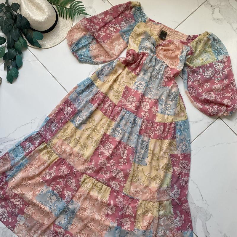 Сукня шифонова довга стан ідеальний, має підклад, ззаду зверху рез., дуже ніжно виглядає р 8 с -довжина 134 -нОг 45-49 ззаду рез. -нОт 35-41 рез. -нОб вільно 57 ФОТО НА ТІЛІ НЕМАЄ