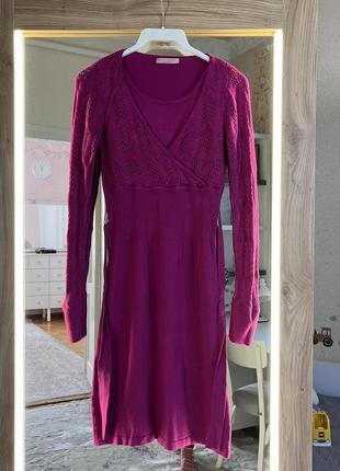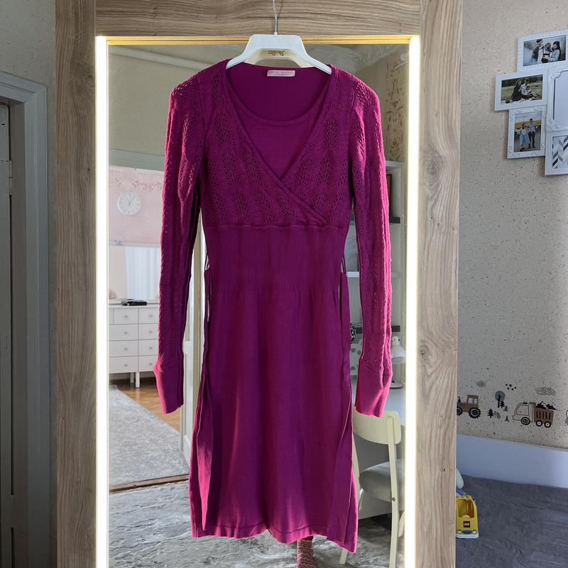 Фірмова вʼязана малинова сукня Anna Maria розмір s, натуральна тканина. Рукав від плеча 70см. Довжина 100см Ширина під рукавами 41.5 см у поясі у спокійному стані ширина 33см і дуже ще тягнеться тканина