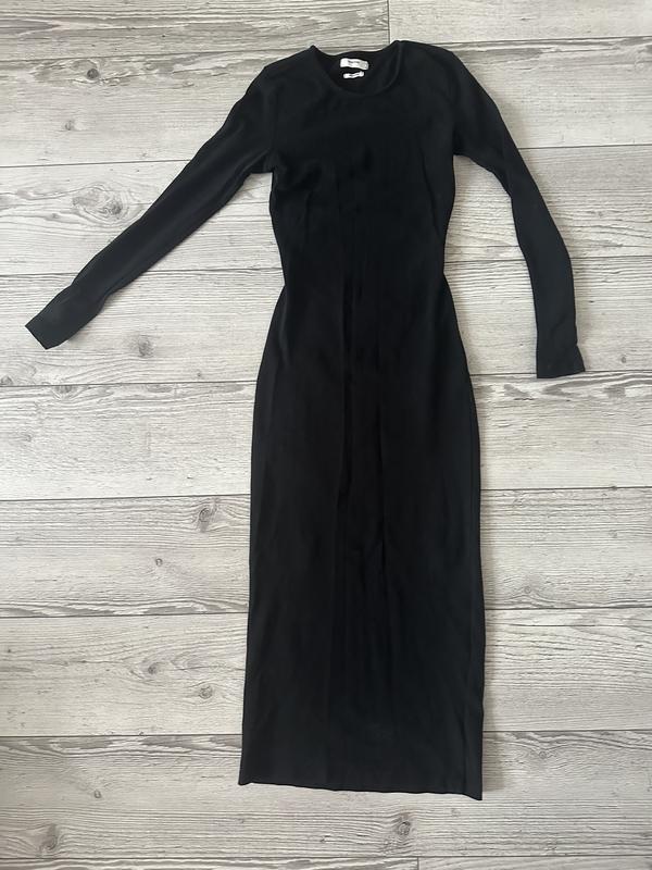 Довга трикотажна сілуетна сукня Гарний стан Плечі-36 Рукав-62 Груди-40 Талія-30 Стегна-38 Довжина-120 Ще добре тягнеться, всі заміри +