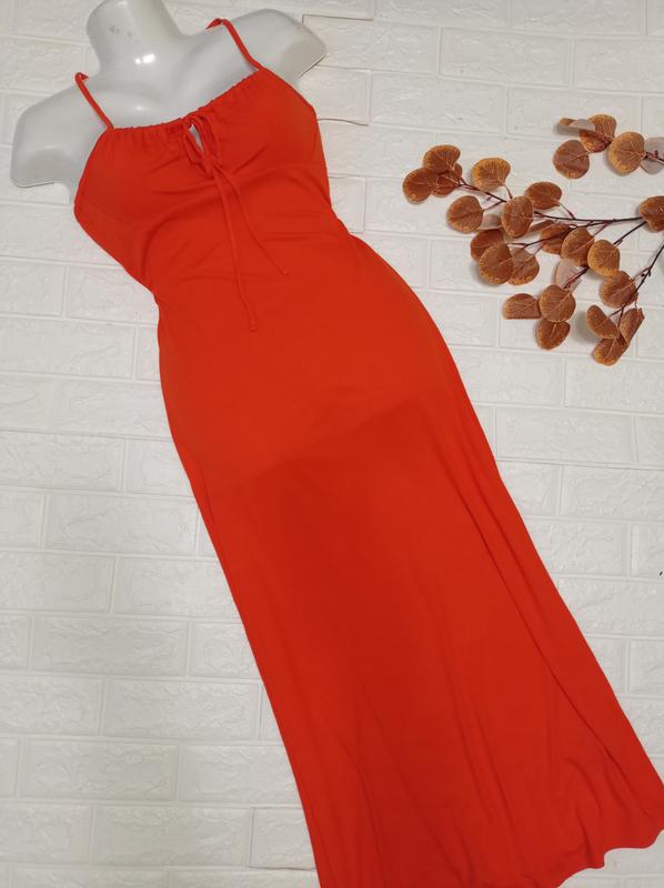 Плаття довге на вузьких бретелях, тканина трикотажна,95%віскоза, тягнеться,дуже приємне до тіла, нове без бумажної бірки Розмір вказаний М Заміри на фото, тягнеться