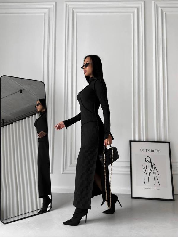 ✨Новинка ✨ Платье из очень мягкого трикотажа, с стильными фигурными швами Ткань : Мустанг Ангора рубчик премиум качества Цвет: молочный, черный Размер : S - M / M - L Цена : 999 грн