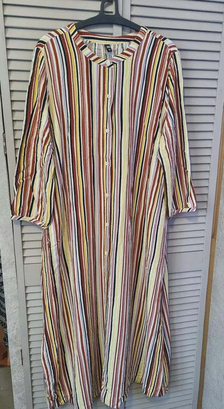 Дуже комфортне плаття, можна з поясом, не парка тканина, гарні відтінки до бежево-золотисто-коричневого макіяжику)) Довжина 128 Плечі 40 Рукав 49 Ширина в грудях 62. Я носила на розмір 50(укр). Дуже стильненько виглядає, якщо ви вибираєте зручний кежуал)