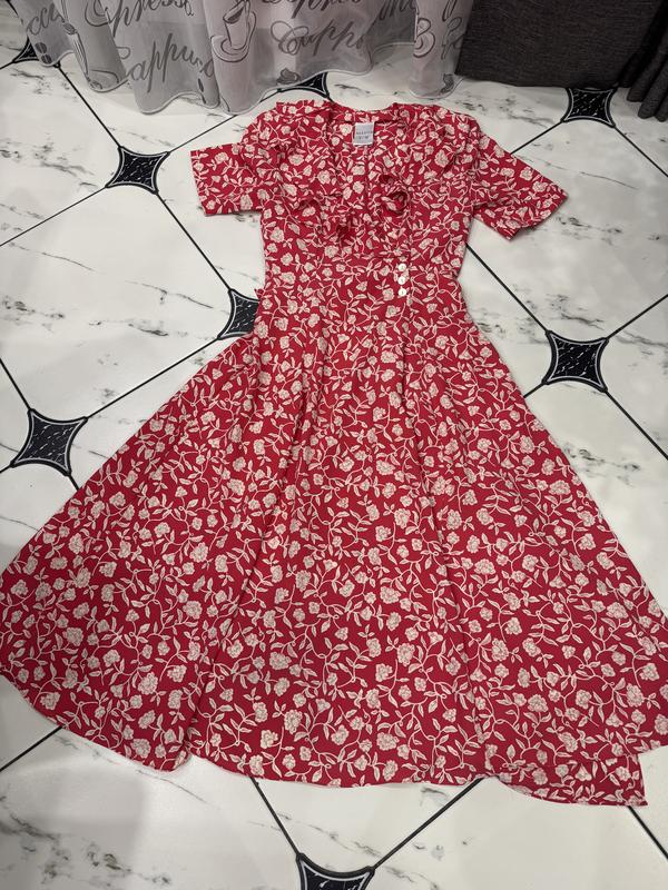 Стильна міді сукня на запах в квітковий принт, на плечах є підплічники. Стан ідеальний. Розмір 8 ( XS-S) Заміри виробу напівобхват грудей 37 см, напівобхват талії 36 см, довжина рукава 27 см, довжина виробу 123 см