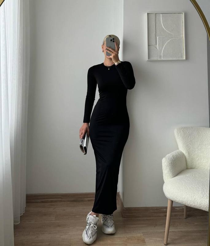 ✨ Сукня Мод. 159 Тканина: віскоза Колір: чорний Розмір: 42-46 З порізами для пальчиків Довжина 140 см