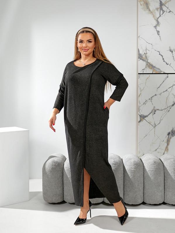 Сукня класична, ошатна Модель 7774 Ціна: 1450 грн Розмір: S (44-46), M (46-48), L (48-50) Тканина: тонка в'язка з додаванням м'якого золота Довжина 138-139 см, рукав від горловини 55 см. ОГ. S - 92 см, M- 96 см, L - 100 см. ОС. S - 101 см, M- 106 см, L - 112 см.