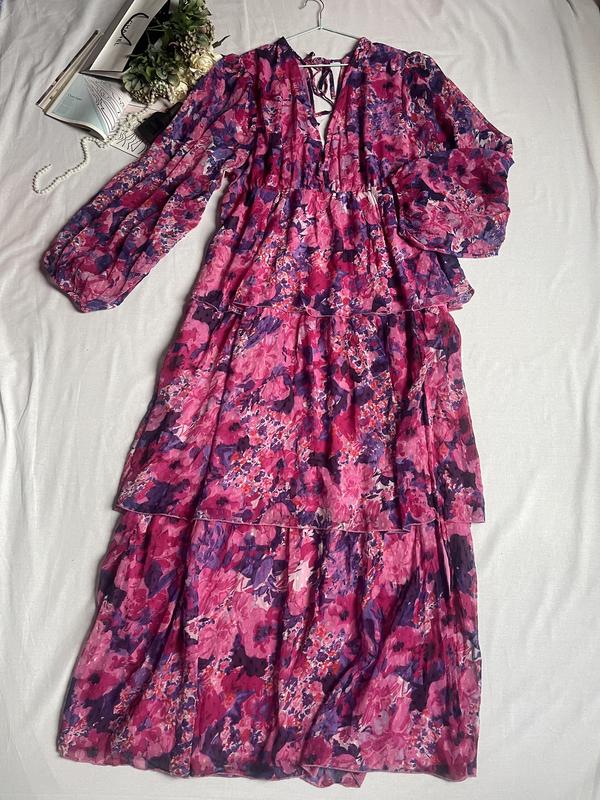 Дуже яскрава сукня в квіти довга від Boohoo Розмір 28, декілька XL. Нова Гарна модель Заміри: довжина 150 см, ПОГ 63 см, ПОТ 49 см, тягнеться резинка до 71 см, ПОБ вільного крою 👛 625 грн