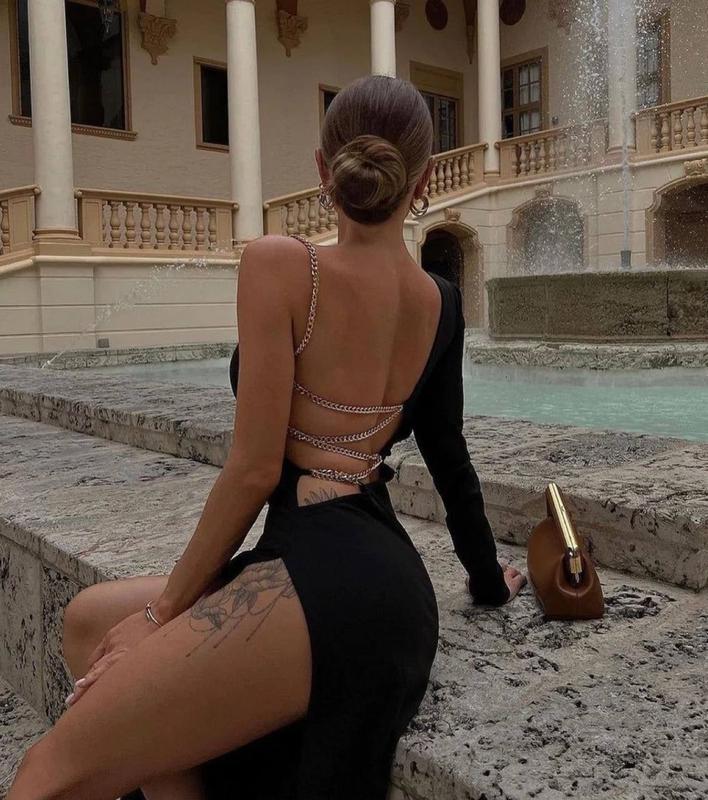 ❤️🔥Сукня з ланцюжком на спині Мод:698 Тканина: еластичний мікродайвінг ✅Дорога фурнітура ‼️Як на фото 🍓Відмінно сидить по фігурі Ціна 990 грн 🔗Заміри Довжина виробу від плеча 133 см Талія до 80 Стегна будь-які