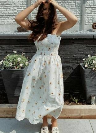 Сукня в квітковий принт з органічного котону. По бірці М, але добре буде й на L. Бретелі можна відстібнути. Нова, з біркою.