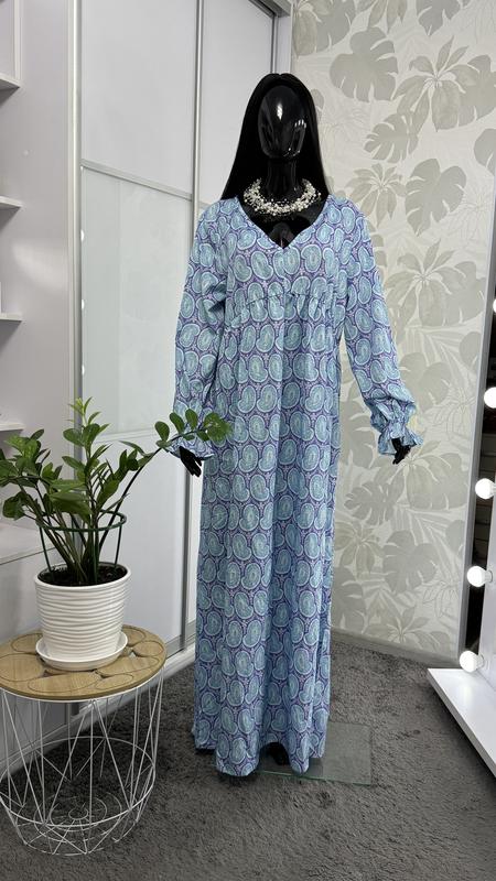 Длинное платье в принт, р.4ХЛ, состояние идеальное, без нюансов. длина 148 см, длина до линии отреза 34 см. ог 118-120 см. от 100-114 см, є резинка. ос 154 см. рукав 64 см.