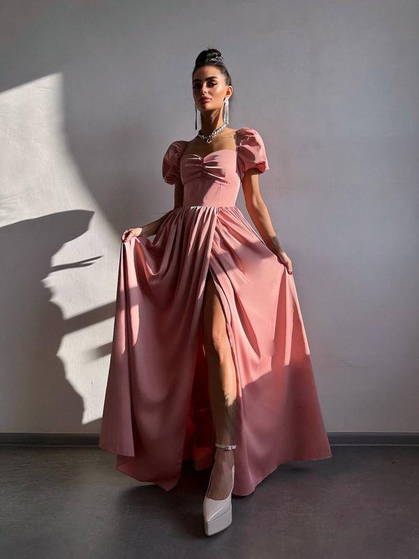 Вишукана атласна сукня максі з розрізом, довге атласне плаття з драпіруванням, сукня максі...