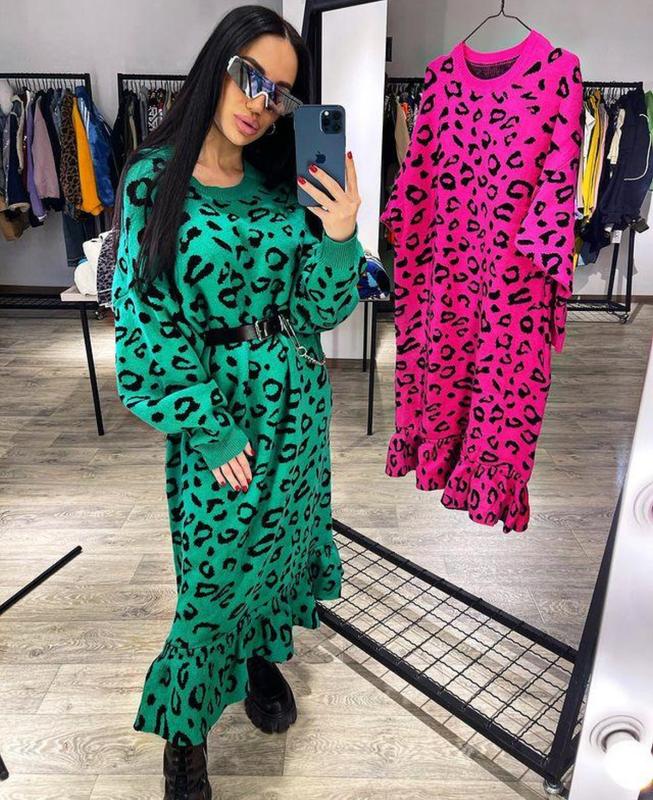 Сукня зелена з леопардовим принтом , вʼязана , дуже якісна, добре приймає форму стан ідеальний , одягалась кілька разів . Коштувала 3199 грн купувалася у gaze shop . Розмір універсальний, підійде від S-3XL. Раміри: Рукав 45 Пів обхват грудей , бедра , талія : 60 ( повний 120 і дуже добре тягнеться) Довжина 115