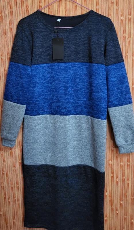 Сукня нова , з бірками, тепленька синя , сіра , темно-сіра , прямого крою.Розмір 42-44,довжина 100, Ог 45-48, Об до 50, рукав 58