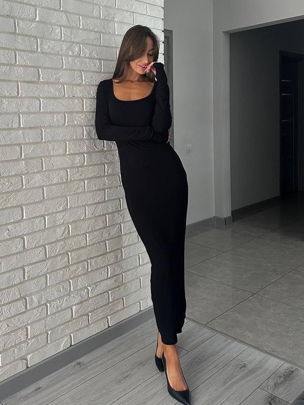 🔸Сукня, як у Кім💥😋 ▪️Модель: 1577 ▪️Тканина: натуральна віскоза (Туреччина) ▪️Розмір: 42-46 (one size) ▪️Колір : чорний Супер якість за низькою ціною🔥 💬Та сама сукня максі в стилі СКІМС з квадратним декольте, ідеально моделює фігуру🥰 М’яка натуральна тканина. На рукавчиках вирізи для пальчиків🔝 ‼️ДВА варіанти вдягання (оголена спинка, або декольте)‼️ ПАРАМЕТРИ (добре тягнеться): ОГ 87-96 см ОТ 64-73 см Довжина 150 см