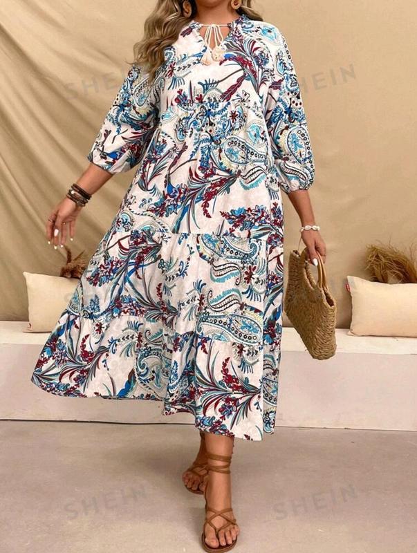 Новая, последний экземпляр! Длинное летнее платье свободного кроя, ткань легкая, не мнется. Бренд Shein. Размер указан 2XL, но идет на L-2XL Ширина под подмышками 62 см Ширина по бедрам 82 см Длина рукава веж ворота 57 см Длина: 129 см 100% Полиэстер