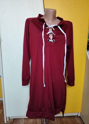 Легенька сукня з довгим рукавом. Гарно підкреслює лінію декольте, а також має розрізи з боків.