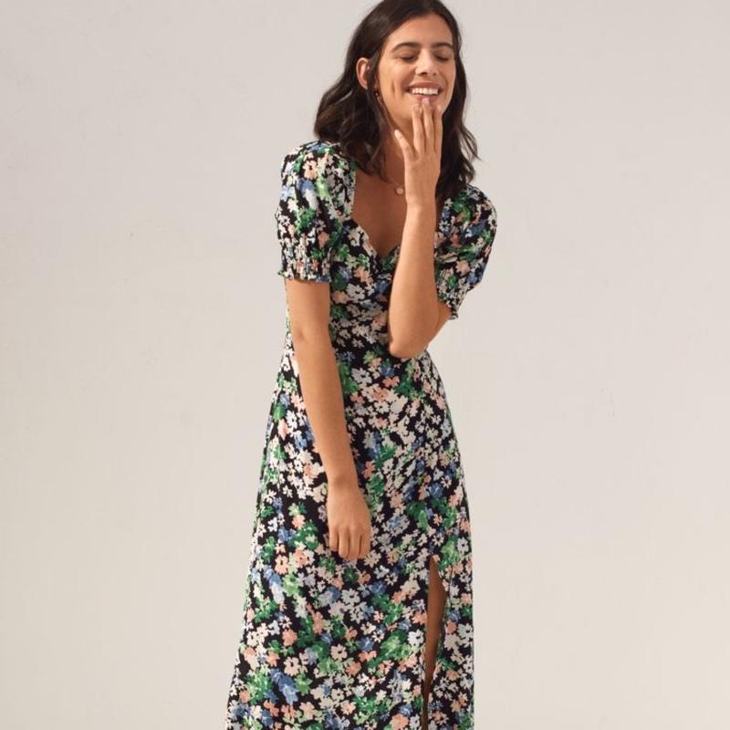 Сукня у квітковий принт із зеленими квіточками H&M ✖️Розмір : UK 20; EUR 48 ✖️Стан: гарний ✖️Заміри: довжина 130, пог 58-60, пот 50-52, поб 70, розріз 50 ✖️Слад : віскоза