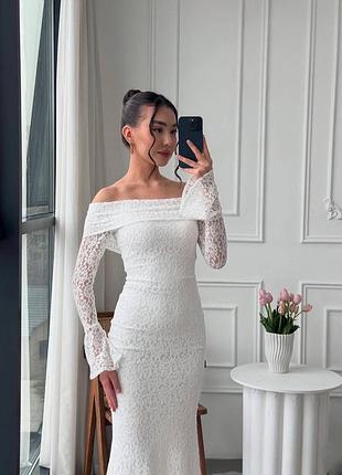 New🩶 Сукня 🔘Мод md 1106 🔘Розміри - 42-44, 46-48 🔘Кольори - чорний, молочний 🔘Тканина - гіпюр + підкладка 🔘Ціна 850 грн Бездоганна мереживна сукня зі спущеними плечима в довжині максі. Гарно підкреслює фігуру, робить образ дуже жіночним та витонченим. На спинці потайна змійка. Не світиться - має підкладку.