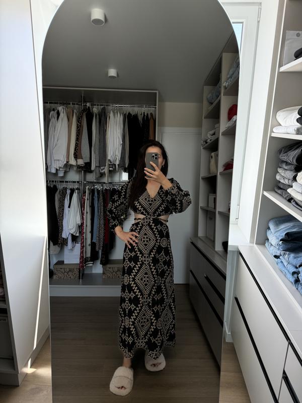 Продам цікаву та оригінальну сукню з машинною вишивкою. ЗАМІРИ НА ОСТАННЬОМУ ФОТО. 100 % котон. Приємна до тіла, красива відкрита спинка. Ззаду на блискавці. Пише М, на розмір Л теж підійде. Також маю ще таку саму на розмір С. Тобто в наявності є дві сукні розміру С та М.