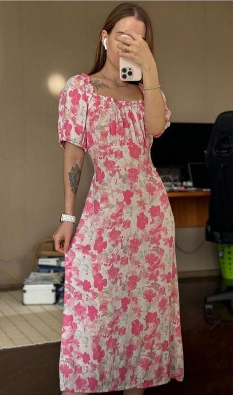 Очень красивое платье. Состояние новой, на меня замало, к сожалению. Отличное качество, на размер С-М ПОГ 39 см сзади резинка и хорошо тянется, ПОТ 47 см, ПОБ 55 см длина 95 см
