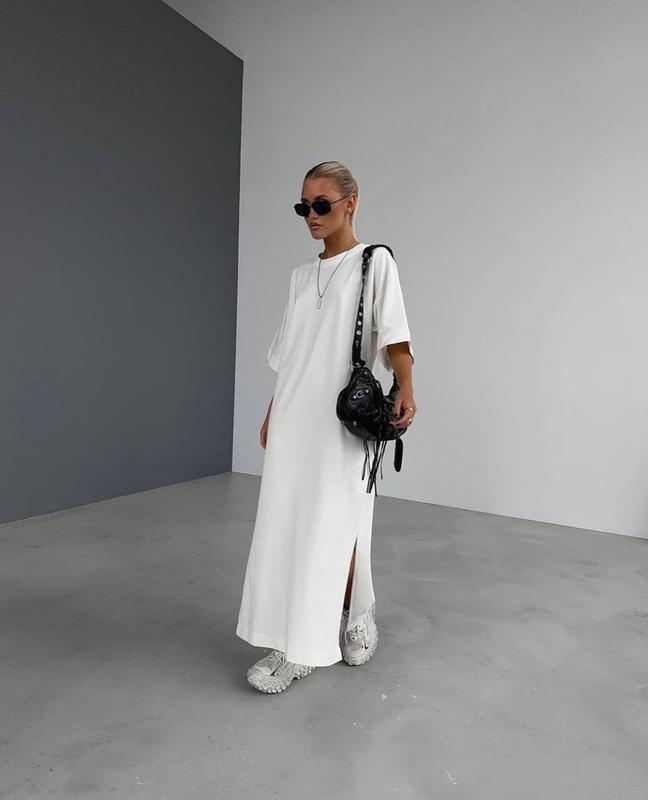 🥰 Сукня в стилі 🧨 OVERSIZE 469 Розмір універсал 42-48 Тканина: якісна 2нитка преміум якості 🔥 Колір: молоко та чорний Заміри по сукні Грудь та стегна 104 Довжина 132см Базова річ яка стане твоїм фаворитом в цьому сезоні 🔥