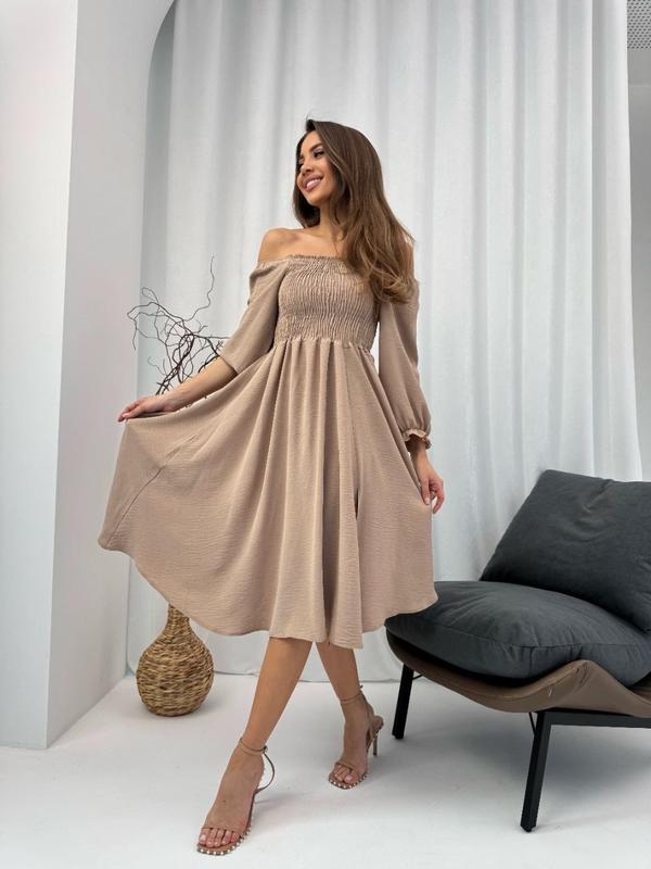 В наявності Сукня Модель 275 Розмір 42-44, 46-48 Тканина: креп жатка (тканина легка, гарно лягає) Кольори: бежевий, білий, чорний, шоколад, голубий, лаймовий Відмінна якість Сукня довжиною міді зі стильно настрочною резинкою по грудях, довжину рукавчиків можна регулювати по бажанню. Ця сукня стане твоєю улюбленою в цьому році.