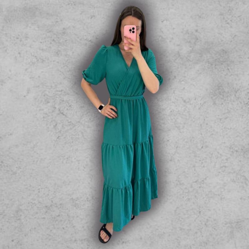 Сукня довга літня жіноча на запах з оборками а силуету розкльошена пишна котон зелений
