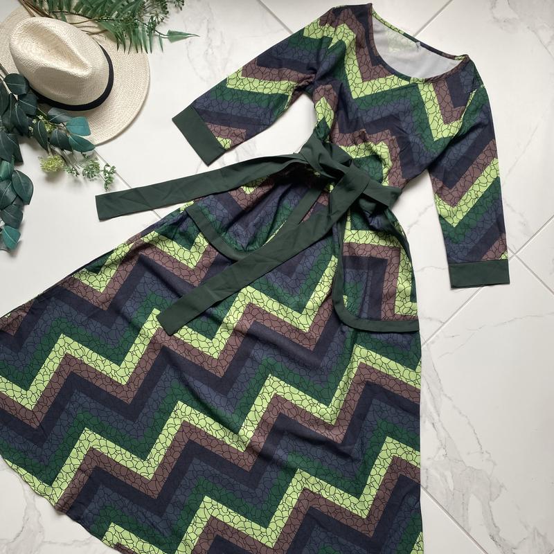 Сукня зелена в орнамент міді стан ідеальний, поліестер, кишені р с -довжина 118, рук 41 -нОг 44-45 -нОт 36-37 пояс -нОб вільно ФОТО НА ТІЛІ НЕМАЄ