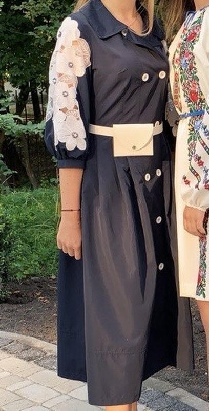 Синє плаття, з пишними рукавами, не жарке, не парить, не мнеться Розмір М, є білий ремінець Торг