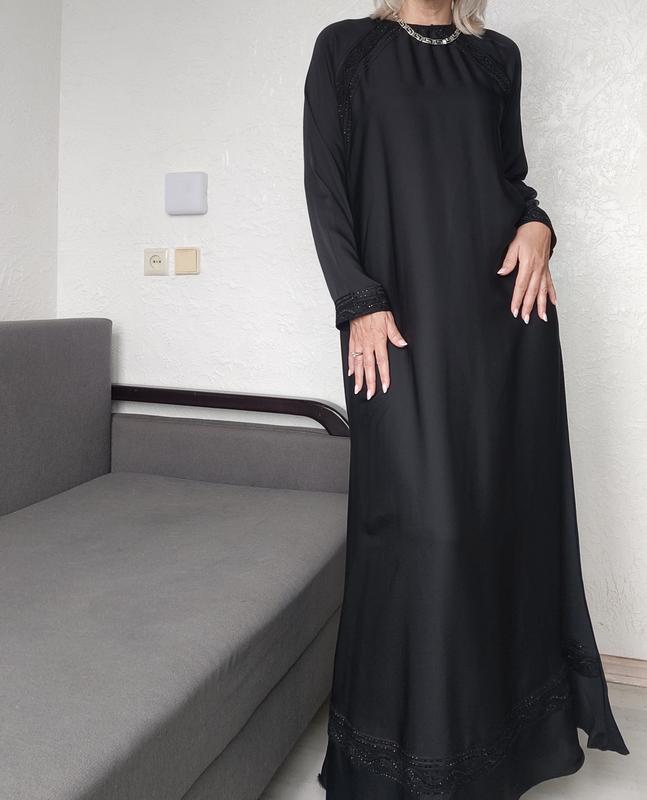 Шовкова сукня абая максі з вишивкою і стразами 🔥🔥🔥