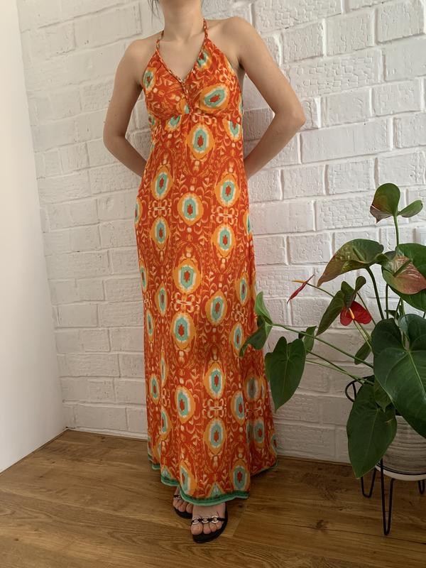 Красива яскрава сукня максі на зав’язках бренду George Розмір М одіто на S Параметри: довжина по спині: 124 см, ПОГ: 43 см, ПО під груддю: 34 см, Сукня має підкладку та потайний замок збоку. Стан сукні як нова🔥 Ціна 200 грн #magiclooks_в_наявності