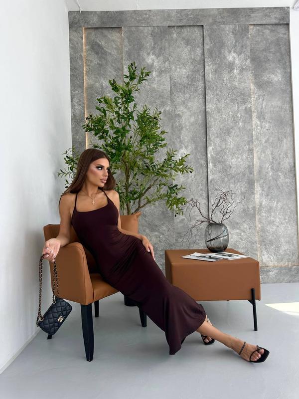 Сукня максі, шоколадна сукня, сукня з відкритою спиною, плаття на зв'язках, сукня максі з...
