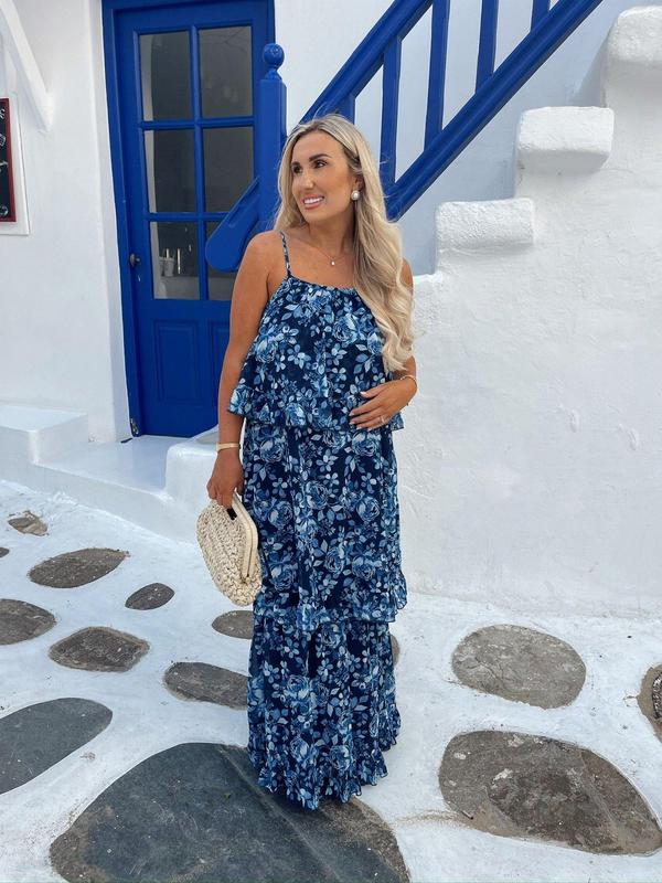 Синее макси платье в цветах in the style л